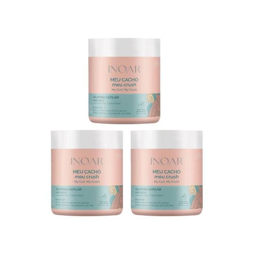 Gelatina Capilar Inoar Meu Cacho Meu Crush 500G - Kit Com 3Un Gelatina capilar inoar meu cacho meu crush 500g - kit com 3 unidades descrição a gelatina capilar inoar meu cacho meu crush 500g foi desenvolvida especialmente para cabelos cacheados e crespos, proporcionando definição, fixação e controle do frizz sem deixar os fios pesados ou rígidos. Sua fórmula é enriquecida com ingredientes hidratantes que auxiliam na saúde e nutrição dos cachos, deixando-os macios, maleáveis e brilhantes. Além disso, é vegana, liberada para as técnicas de no e low poo, e não contém sulfatos, petrolatos, parabenos ou silicones insolúveis. modo de uso Com os cabelos limpos e úmidos, aplique uma quantidade adequada da gelatina capilar inoar meu cacho meu crush nas mãos. Distribua o produto mecha por mecha, amassando os fios de baixo para cima para estimular a formação dos cachos. Para mais definição, utilize um difusor ou deixe secar naturalmente. Pode ser Utilizado sozinha ou misturada com um creme de pentear para um efeito mais hidratante. Marca: Não Informado