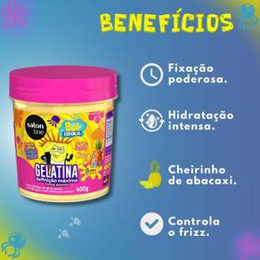 A Gelatina Capilar Salon Line Kids Bob Esponja Definição Máxima 400g é a solução perfeita para garantir cachos definidos, com brilho e sem frizz para as crianças. Desenvolvida especialmente para os pequenos, esta gelatina proporciona uma finalização poderosa e um cheirinho delicioso de abacaxi, transformando a rotina de cuidados capilares em um momento divertido. Ideal para cabelos ondulados, cacheados e crespos, a partir dos 3 anos de idade, ela desembaraça facilmente os fios, promovendo uma definição duradoura e saudável.