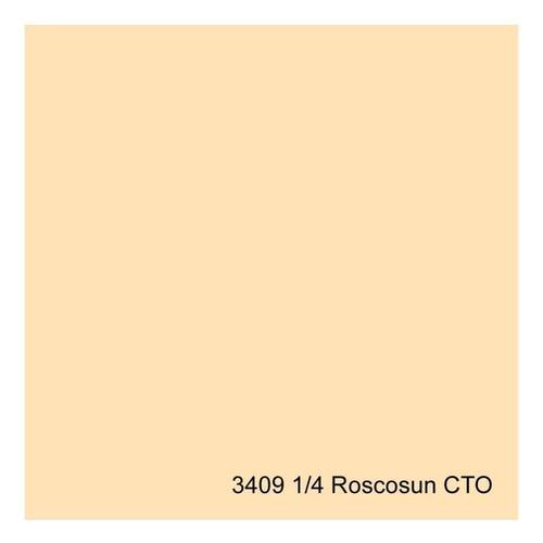 Gelatina Cinegel 3409 Roscosun Rosco 2113409 são filtros de conversão para Luz do Dia RoscoSun ÂMBAR são um arranjo de gelatinas âmbar que abaixam a temperatura de cor conforme a necessidade. Embora tipicamente usados em fontes Luz do Dia 5500F, para balancear com tungstênio, estas gelatinas oferecem uma grande variedade de possibilidades técnicas e estéticas de correção de cor.
