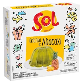 Especificações gerais: O Pó para Sobremesa de Gelatina SOL, misturado com água, resulta em uma sobremesa deliciosa e de excelente qualidade. Você pode combinar com outros ingredientes, como sucos de fruta, para variar o cardápio e surpreender.