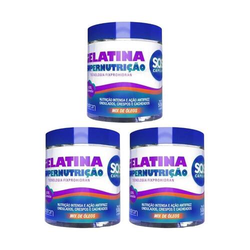 Gelatina hidran 500g sos super nutrição - kit com 3un Descrição A gelatina hidran sos super nutrição em embalagem de 500g é um tratamento intensivo para cabelos ressecados e danificados. Formulada com ingredientes nutritivos, como óleo de coco e de karité, esta gelatina proporciona nutrição profunda aos fios, restaurando a saúde capilar e deixando-os mais macios, brilhantes e fáceis de pentear. Ideal para cabelos que necessitam de um cuidado extra para recuperar a vitalidade e o brilho natural. Modo de uso Aplique a gelatina hidran sos super nutrição nos cabelos limpos e úmidos, do comprimento às pontas. Modele como desejar e deixe secar naturalmente ou utilize um secador com difusor para melhor definição dos cachos. Não enxágue. Use regularmente para manter os cabelos nutridos, saudáveis e com aspecto revitalizado. Marca: Não Informado