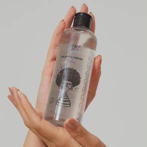 MODO DE USAR: Com os cabelos molhados, aplique a Gelatina Líquida FixaBrilho Hey, Afrodite uniformemente do comprimento às pontas amassando de baixo para cima ou faça fitagem mecha a mecha. Não enxágue. Deixe secar naturalmente ou seque com ajuda de um difusor.