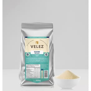 Gelatina em Pó - VELEZ Produto premium, puro, nível alimentício. Solúvel em agua a 35o. C. Gelatina é um ingrediente alimentar translúcido, incolor e insípido. Sua composição química é muito semelhante à do colágeno. É completamente digerível e contém 18 aminoácidos diferentes incluindo 8 dos 9 aminoácidos essenciais para nosso corpo, com exceção do triptofano. É especialmente rica em glicina, prolina e hidroxiprolina que juntas, representam quase 50% da composição da molécula. A gelatina é comumente Utilizado como agente gelificante, estabilizante, emulsionante, clarificante, formador de películas ou de espuma em alimentos, cápsulas de medicamentos e vitaminas, filmes e papéis fotográficos e cosméticos. Em alimentos tem suas principais aplicações em balas, gomas, marshmallows, sobremesa, iogurtes, sorvete, corbeturas e recheios, patês e requeijões e outros. Ingrediente natural e versátil que permite a criação de produtos clean label com cor, sabor e odor neutros . Usos : Em sobremesas, bolos, doces e confeitos . Espessante em diversos preparos como coberturas e recheios. Clarificante para sucos e cerveja artesanal . Na nutrição , como suplemento rico em colágeno, fortalecimento de unhas, cartilagens, cabelo . Rico em proteinas. Peso: 500g Origem : Nacional