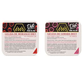 Na caixa Contém: 72 Un de Geleia de Goiaba Diet Isis 10g cada 72 Un de Geleia de Morango Diet Isis 10g cada Total 144 un.