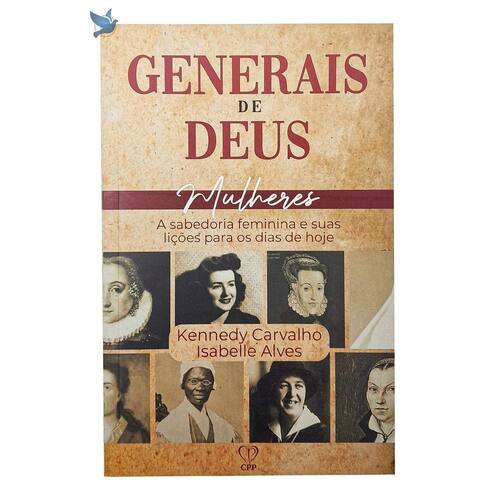 O Livro Generais Deus Mulheres Carvalho / Alves Baseado Na Bíblia é uma obra espiritual cristã que apresenta a sabedoria feminina e suas lições para os dias de hoje. Escrito por Kennedy Carvalho e Isabelle Alves, o livro traz histórias de mulheres importantes tanto para o mundo quanto para o Brasil, mostrando como Deus as usou em diversas situações e ocasiões para propagar o Evangelho.