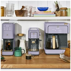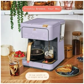 A Cafeteira Beautiful MultiBrew na elegante cor White Icing une versatilidade, sofisticação e praticidade em um único aparelho estiloso. Prepare seu café do jeito que preferir com múltiplas opções: uma jarra de vidro para até 12 xícaras, doses únicas com cápsulas ou café moído. O modo Iced Coffee oferece a refrescância de cafés gelados, perfeito para dias quentes. Seu display touch programável torna o preparo simples e totalmente personalizável, permitindo agendar o café, manter a temperatura e controlar o tempo de preparo. Com acabamento em softtouch fosco White Icing e detalhes em dourado champanhe, esta cafeteira alia alto desempenho a um toque moderno e aconchegante para a sua cozinha.