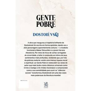 A estreia literária de Dostoiévski é um retrato tocante da vida nas camadas mais humildes da sociedade russa. Escrito em forma epistolar, o romance revela com delicadeza e profundidade a luta pela dignidade em meio às dificuldades do cotidiano. Com uma narrativa envolvente e sensível, Gente Pobre antecipa o olhar humano e a análise psicológica que consagrariam Dostoiévski como um dos maiores escritores de todos os tempos. Uma obra essencial para quem deseja conhecer as origens de seu gênio literário e refletir sobre a condição humana. Marca: Não Informado