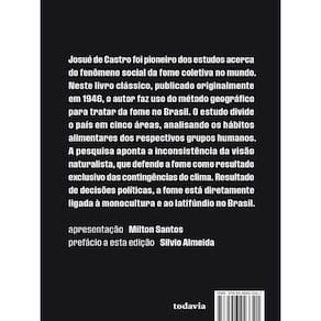 Quando Geografia da fome foi publicado pela primeira vez, em 1946, o país passava pelo processo de redemocratização e tentava enfrentar suas fraturas mais evidentes. Decorridos mais de setenta anos, é doloroso notar como elas se aprofundaram. O autor denuncia a fome coletiva como um fenômeno social presente em todos os continentes, com foco no Brasil. E defende que ela é decorrente dos sistemas econômicos e sociais, não de condições climáticas.