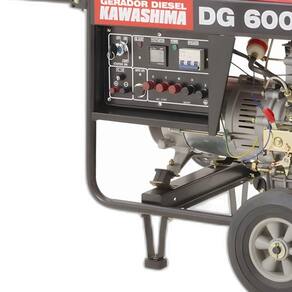 Especificações Tipo: Gerador diesel, trifásico Modelo: DG 6000-ET Código: 65-00220 Tensão: 220 V Frequência: 60 Hz Potência nominal: 4600 W / 5,63 kVA Potência máxima: 5000 W / 6,5 kVA Motor: Kawashima DE 1000-E Tipo do motor: Monocilíndrico, horizontal, diesel, 4T, refrigerado a ar Cilindradas: 406 cc Potência máxima do motor: 10 HP Capacidade do tanque de combustível: 12,5 L Consumo de combustível: 383 g/kWh Sistema de partida: Elétrico (12V - 17A) Regulador de tensão (AVR): Sim Preparado para ATS (Painel Automático de Transferência): Sim Carregador de bateria: Sim Voltímetro: Sim Nível de ruído: 110 dB (A) Dimensões: 740 x 475 x 590 mm Dimensões da embalagem: 815 x 515 x 625 mm Dimensões do suporte da bateria: 110 x 200 mm Peso líquido: 93 kg Peso bruto: 98 kgItens Inclusos 1 Gerador a Diesel Kawashima DG6000-ET (Modelo DG 6000-ET)Perguntas Frequentes (FAQ) Pergunta: Qual a potência deste gerador a diesel?