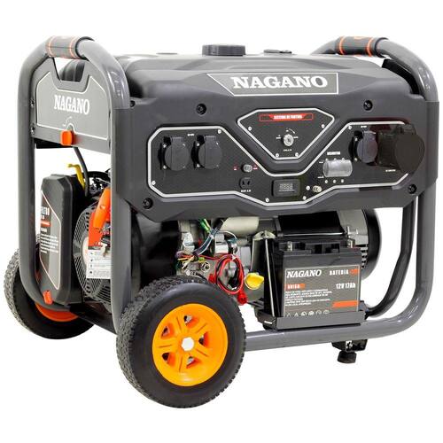 Os geradores NAGANO são reconhecidos pela alta eficiência e desempenho com partida elétrica automática ou manual. Projetados para aplicações nos regimes emergenciais residências indústria e comércio. ATENÇÃO *A bateria que acompanha esse equipamento é uma cortesia da NAGANO portanto não é aplicada garantia a esse item. Atenção Únicos QTA's homologados NAGANO/STRAZMAQ APLICAÇÃO Projetados para aplicações nos regimes emergenciais residências indústria e comércio. MODELO NG10000E3D Especificações Técnicas Potência nominal 8 kVA Potência Máxima 9 kVA Tensão de Saída 220V(tri)/ 380V(tri) FASE Trifásico Regulador de Voltagem AVR Frequência 60 Hz Corrente nominal 21 A Nível de ruído 79 dB (7m) Carregador de Bateria 12 V / 8 3ª Alerta de Nível de óleo Sim Especificações do Motor Tipo 4 Tempos Refrigerado a ar Potência 16 HP / 3600 RPM Cilindradas 460 cc Partida Elétrica Combustível Gasolina Capacidade do tanque 25 litros Capacidade do óleo do cárter 1 1 litros Autonomia (50% de carga) 8 h