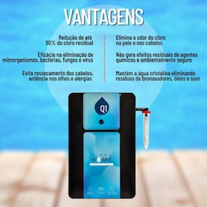 Reduz problemas atribuídos ao uso do cloro como irritação nos olhos, alergias, agravamento de problemas respiratórios, infecções de ouvido, ressecamento da pele e cabelo, odor desagradável;