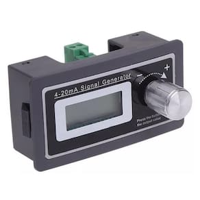 Esse componente e um Gerador de sinal analogico, com saida de 4 a 20mA, possui display LCD e potenciometro de ajuste do sinal de saida de 4 a 20mA. Possui protecao contra inversao de polaridade de alimentacao do gerador, ou seja, pode-se inverter o positivo pelo negativo na alimentacao que nao ira danificar o gerador.
