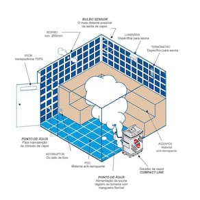 Ideal para uso tanto comercial quanto residencial, o gerador deve ser instalado na parte externa do ambiente de sauna, ficando o mais próximo possível da parede. É necessário um quadro de comando analógico ou digital para o seu funcionamento e o gerador acompanha 4 metros de cabo para instalação e conexão com o quadro.