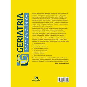 A segunda edição do “Geriatria: prática clínica” é apresentada com 55 capítulos distribuídos adequadamente em 7 seções. Traz ainda um completo apêndice com as escalas práticas para avaliação geriátrica do dia a dia. Os principais problemas do cotidiano na prática clínica em Geriatria foram discutidos na obra. Os assuntos foram cuidadosamente escolhidos baseados em importância e aplicabilidade clínica: abordam desde a avaliação geriátrica ampla, passando por multimorbidades, atividade física e rastreamento, até questões como neoplasias, hipertensão, dislipidemias, asma, pneumonia, osteoporose, anemia, sexualidade e sono. É realmente um material completo para acompanhar o cotidiano do médico geriatra.