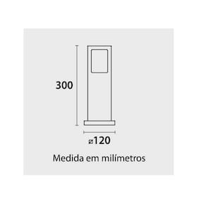 Poste Balizador Germany Garten 30cm E27 Bivolt Em alumínio, com pintura eletrostática a pó e componentes inoxidáveis Características Gerais do Produto: Dimensões AxLxP (mm): 300x120x120 Referência: 14110100-11 Cor: Preto Fosco Garantia: 1 ano junto ao fabricante Grau de Proteção: ip 43 Local de Uso: Interno; Externo Material: Alumínio e Vidro Número de Lâmpadas: 1 Potência Máxima (por soquete): 60W Soquete: E27 Acompanha o produto: 1 Poste Balizador Manual de Instruções