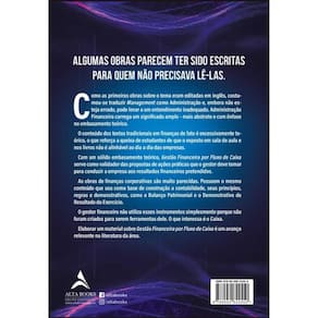 Um guia para quem não conhece e quer Entender a atuação na área financeira Gestão pressupõe identificar o objetivo, estabelecer os recursos necessários, seguir o plano e monitorar os resultados – como um guia deve fazer. Ainda que haja um embasamento teórico consistente, esta obra tem por prioridade mostrar quais são as ações necessárias para que o profissional de finanças seja bem-sucedido na empresa. A parte do título Fluxo de Caixa destaca outro diferencial. As publicações sobre finanças usam como ambiente de informação os registros contábeis. Aqui há a exposição sobre como os profissionais atuam com a contabilidade – como agregar novas ferramentas, novos controles e formas mais diretas de gerar resultado usando o fluxo de caixa. O esforço colocado neste livro foi para que servisse como um guia para quem não conhece e quer entender a atuação na área financeira, mostrando cada passo do processo da forma mais prática possível. Construir todo um processo de gestão financeira com a abordagem de fluxo de caixa como guia dá uma nova perspectiva para o gestor. As decisões e seus efeitos passam a fazer mais sentido. Experimente trilhar esse caminho.