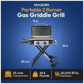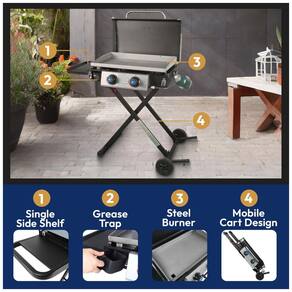 MÁQUINA DE GRELHADOR DE QUINTAL Chapa ao ar livre de feita com queimadores duplos para fins de semana de churrasco com amigos e familiares durante todo o verão. CONEXÃO DE CILINDRO EFICIENTE Funciona com um cilindro, mas também um tanque de propano de 9 kg com uma mangueira adaptadora vendida separadamente. GERENCIAMENTO DE GRAXA DE FÁCIL ACESSO O sistema de gerenciamento de graxa de acesso frontal e o copo oculto facilitam o tempo de limpeza. DESIGN PORTÁTIL, EM MOVIMENTO O design exclusivo do carrinho móvel facilita a dobra para zenamento ou transporte Marca: Não Informado