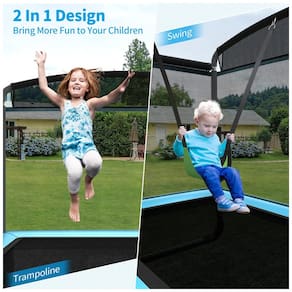 de usar a segurança das crianças é nossa prioridade. Com uma rede de segurança com zíper suave e fivelas duplas, almofada de espuma macia sem costura e tubos superiores acolchoados de espuma, este trampolim de alta qualidade mantém seu filho enquanto deixa seu filho se divertir. Por exemplo, o design sem lacunas evita lesões acidentais nas mãos ou nos pés. Balanço e removível Este trampolim infantil é diferente dos outros porque possui um balanço interno para que seu filho possa balançar e pular enquanto isso. E as cordas em ambos os lados são convenientes para o seu filho segurar, o que aumenta a sensação de segurança. O balanço também pode ser removido para maior comodidade. Construído para estabilidade Feito de aço galvanizado resistente, este trampolim infantil é antiferrugem e durável para uso interno e externo. Ao mesmo tempo, a estrutura em forma de U e o tapete antiderrapante na parte inferior garantem sua forte estabilidade. Portanto, é capaz de segurar seu filho facilmente 100 kg. Excelente desempenho de salto Para oferecer uma experiência de salto segura e saltitante, este trampolim ao ar livre apresenta um tapete de salto de alta densidade com 40 molas galvanizadas. Ao saltar, não só promove o crescimento ósseo, mas também consome a energia do seu filho para um sono melhor Marca: Não Informado