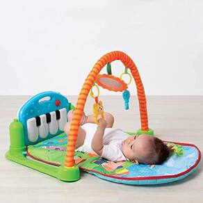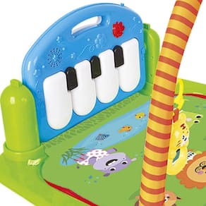 O Ginásio com Pianinho é uma plataforma inovadora que combina brincadeiras clássicas com o formato de um piano musical. Ele pode ser reposicionado em quatro modos, tendo sido desenvolvido para crescer com o bebê nos seus primeiros anos. Para os mais novos, o ideal é brincar no modo deitado, chutando as teclas e observando o arco de brinquedos. No modo bruços, os brinquedos podem ser colocados no tapete, e o bebê aproveita a autodescoberta no grande espelho, além de brincar com os vários brinquedos. Já no modo brincar sentado, o piano levanta, permitindo que o bebê sente com conforto para tocá-lo, criando muita diversão musical. E, no quarto modo, o piano pode ser levado para onde quiser, com a grande alça que facilita o transporte