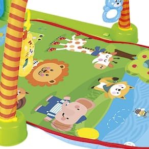 Características: Ginásio de atividades com piano acompanha as diversas fases do bebê. Piano Removível pode ser preso no berço Música de ninar ajuda a dormir mais rápido Modo noturno - volume baixo recomendado para o sono O bebê pode brincar deitado no berço apertando as teclas Tapete confortável e acolchoado Arco com bichinhos de atividades pendurados para o bebê se divertir nesta fase em que fica deitado Espelho para o bebê se reconhecer Piano com teclas grandes para o bebê tocar com os pés Os brinquedos de atividades podem ser presos no tapete para o bebê brincar de bruços. Piano: 4 teclas com música e luz 3 modos musicais Material: Plástico e tecido Produto certificado pelo Inmetro Dimensões: 44 cm x 52,5 cm x 86,5 cm (AxLxC) Peso Aproximado do Produto (kg): 1,450