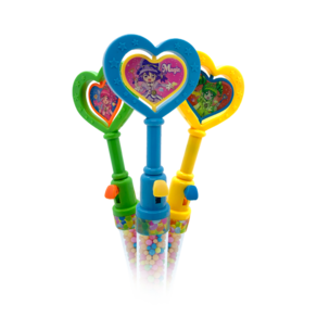 Descubra o Gira Coração Royal, um brinquedo encantador que gira o coração das crianças com alegria e sabor! Este brinquedo giratório em formato de coração está ligado à parte superior de um tubo cheio de deliciosas balinhas Tutti Frutti, oferecendo diversão e guloseimas em um só lugar.
