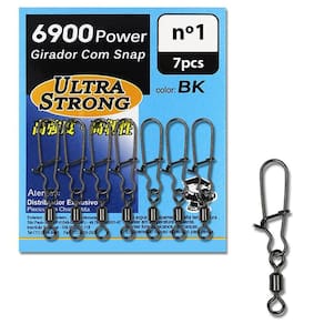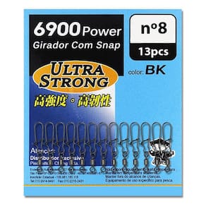 Girador com Snap 6900 Reforçado para Pesca V-Fox Tamanho: 8 Girador com Snap 6900 Reforçado para Pesca V-Fox Snap com Girador V-Fox 6900 Power Ultra Strong muito resistente e eficaz, tem como função evitar a torção da linha de pesca, aumentando vida útil do material da linha. O Snap é forte o suficiente para não abrir durante a briga com um peixe maior, além de apresentar praticidade na troca das iscas artificiais. Não se imagina a pesca esportiva sem a utilização desse pequeno acessório. Produto indispensável na sua maleta de pesca. Especificações: Incluso: 1 pacote - nº 2/0 Comprimento 6cm. Resistência: 90 kg. Snaps por Embalagem: 5un. - nº 1/0 Comprimento 5,5cm. Resistência: 80 kg. Snaps por Embalagem: 6un. - nº 1 Comprimento 5cm. Resistência: 58 kg. Snaps por Embalagem: 7un. - nº 2 Comprimento 4,5cm. Resistência: 50 kg. Snaps por Embalagem: 8un. - nº 3 Comprimento 4cm. Resistência: 41 kg. Snaps por Embalagem: 9un. - nº 4 Comprimento 3,7cm. Resistência: 33 kg. Snaps por Embalagem: 10un. - nº 5 Comprimento 3,3cm. Resistência: 26 kg. Snaps por Embalagem: 11un. - nº 6 Comprimento 3cm. Resistência: 20 kg. Snaps por Embalagem: 12un. - nº 7 Comprimento 2,7cm. Resistência: 13 kg. Snaps por Embalagem: 12un. Composição: Aço Marca: Não Informado