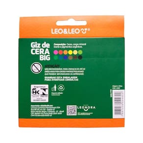 Giz de Cera Big Leo&Leo possui 12 cores vibrantes e seu grande diferencial é a facilidade no manuseio, ideal para trabalhos escolares infantis. Seu formato anatômico auxilia no desenvolvimento da coordenação motora.