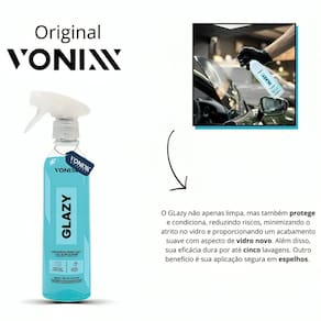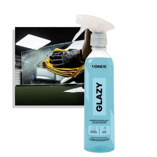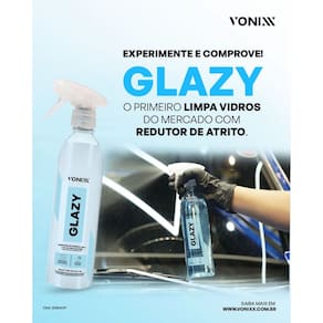 O Limpador Desengordurante Glazy da Vonixx é um produto 4 em 1, desenvolvido para vidros em geral, que limpa a superfície com extrema eficiência, protege de eventuais danos como riscos e rasuras, condiciona e atua como redutor de riscos. Diminui as chances de riscos causados por limpadores de para-brisas e movimentações de riscos laterais, deixando um toque liso e aspecto de vidro novo. É a melhor escolha, com desempenho impecável e confiável para a limpeza de vidros e espelhos, oferecendo uma remoção eficiente de resíduos, secagem rápida e um acabamento sem rastros ou manchas indesejadas.ESPECIFICAÇÕES TÉCNICAS- Redutor de riscos- Toque liso- Limpeza eficiente- Altura: 6 cm- Largura: 8,5 cm- Comprimento: 26,5 cm- Peso: 0,600 Kg- Volume: 500 mlMODO DE USAR1 - Pulverize uma pequena quantidade do produto diretamente nos vidros;2 - Espalhe rapidamente o produto utilizando uma microfibra específica para vidros;3 - Vire a microfibra ou utilize uma segunda microfibra limpa e seca para dar acabamento até concluir o processo;4 - Se necessário, repita a operação.APLICAÇÕESIndicado para vidros, também pode ser utilizado em espelhos, telas de computador, televisores e telas multimídia em geral.