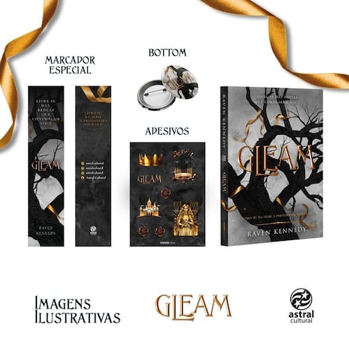 GLEAM, livro 3 da série A prisioneira dourada, fantasia que conquistou o TikTok. Perfeito para fãs de Sarah J. Maas e Jennifer L. Armentrout. REI MIDAS. Ele moldou quem sou hoje... Mas eu também o moldei. Escapei da minha gaiola dourada, e, se quero continuar livre, terei de fazer uma escolha. O problema é que essa escolha se tornou difícil demais. Slade Ravinger é uma complicação com a qual não consigo lidar agora, e o arrependimento e a vingança estão fervendo dentro de mim. E tudo irá explodir em breve e alguém irá se machucar. Mas, desta vez, não serei eu. Retorne para o mundo de Orea, onde reis são mentirosos e toda magia tem um preço. A série A prisioneira dourada está recheada de intriga e romance, em que o ouro irá mostrar o derradeiro valor da ganância.