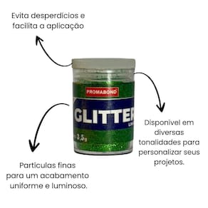 Com o Glitter Poliéster 3,5g, suas criações ganham um toque especial e um brilho incomparável Seja para decorar, realçar a beleza ou transformar projetos criativos, esse glitter é a escolha perfeita para quem ama destacar cada detalhe.