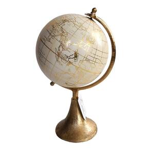 Benjara BM302695 15 pol. Suporte de torneamento suave e alumínio Globo de acento moderno branco e dourado