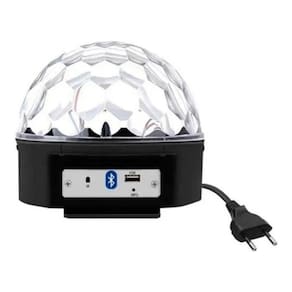 Especialmente projetado para criar feixes luminosos, fortes e condensados Com bluetooth Conecte um sd ou usb e faça a festa Baixo consumo de energia Plug & play Ângulo de trabalho de 138º Recomendado para festas e eventos Design moderno em formato de meio globo Possui furos para fixação Projeção led multicolorido vermelho, verde, azul, branco, pink, laranja 06 leds de alto brilho Modo automático programável fade, strobo colorido, mista e single Funciona pela batida da música via sensor Funciona no modo automático Carcaça de plástico