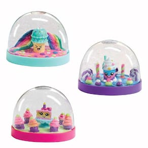 Crie 3 mundos aquáticos temáticos de doces usando as ferramentas de escultura incluídas e argila de modelagem brilhante. Você pode até misturar para criar novas. Complemente seus globos aquáticos com 3 estatuetas doces - um bolo de aniversário, milk-shake e uma casquinha de sorvete. Polvilhe glitter para criar a cobertura de sobremesa perfeita.