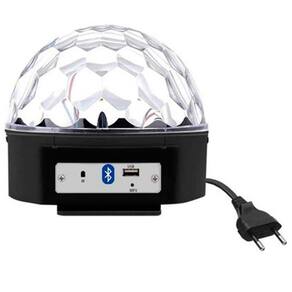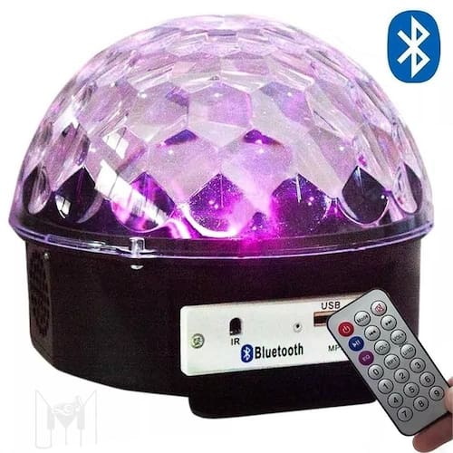 Bola maluca bluetooth possui em seu interior 6 leds total de 24w, proporcionando uma linda de iluminação, seu domo transparente foi especialmente projetado para criar feixes de luzes fortes e condensados ao mesmo tempo iluminando o ambiente. Possui 90 lentes em seu domo acrílico gerando incríveis 540 pontos de feixes luminosos. Esta bola maluca tem várias funções: bluetooth, usb e sensor de som. Acompanha um pen drive e controle remoto. Possui alto falantes internos, basta inserir o pendrive ou ligar ao bluetooth e escutar as musicas, não é necessário ter outro aparelho de som, possui um ótimo som para pequenas festas.