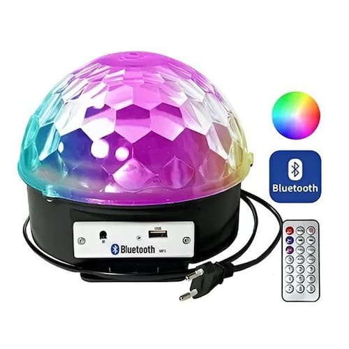 Globo de luz led bola maluca rgb bluetooth com usb e mp3 Transforme qualquer ambiente em uma verdadeira balada com o globo de luz giratório led, ideal para festas, aniversários e eventos. Fabricado em plástico de alta qualidade, ele possui 6 leds internos que totalizam 18w, oferecendo uma iluminação vibrante e impactante.