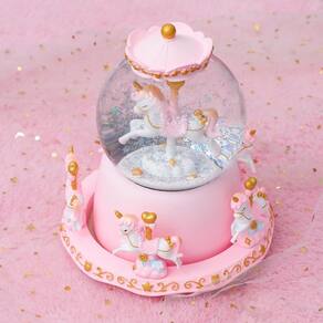 Material: Resina Tamanho: 14,5 x 18,5 cm Peso: GenChanting Carousel Design — Apresenta um gracioso unicórnio giratório dentro de um globo de neve cintilante, estilizado com detalhes em rosa e dourado que evocam uma atmosfera onírica de conto de fadas. Iluminação LED suave — A iluminação suave integrada aprimora os flocos brilhantes dentro do globo, criando um efeito visual romântico, especialmente encantador à noite. Artesanato de resina durável — Feito de materiais de resina e vidro de alta qualidade, pintado à mão para um acabamento suave e maior durabilidade. Funcionalidade de rotação interativa — O design mecânico de corda toca música enquanto o unicórnio interno gira lentamente, oferecendo prazer visual e auditivo. Charming Display Accent — Ideal como decoração de mesa em quartos, butiques ou recantos aconchegantes, combinando música, luz e arte em uma peça elegante.
