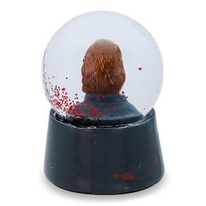- A noite em que ele chegou em casa: você sempre o encontrará à espreita nas sombras. Michael Myers está em outra sequência de terror na forma deste globo de neve, prendendo o bicho-papão em uma cena miniaturizada de glitter vermelho.