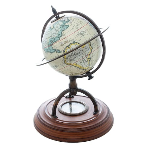O Globo Decorativo em metal e madeira com bússola é a escolha ideal para quem valoriza peças com personalidade e um toque vintage. Com base em madeira e detalhes em metal dourado, ele conta com uma bússola funcional integrada, que enriquece ainda mais a estética da peça.