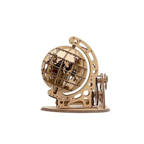 Um belo artefato decorativo, com movimentação real em seu eixo de rotação, e estrutura de engrenagens interativas mecânicas vislumbrando o encanto de um enigma fantástico de movimentos, o globo mecâncio é fabricado através de tecnologia corte a laser em mdf de 3mm natural, com diversas peças que se movimentam interna e externamente. Um excelente passa tempo que garante uma experiência unica no processo de montagem e assimilação de princípios mecânicos, como na propria brincadeira em si, trazendo uma experiência interativa de construção de um modelo funcional. Um ótimo passatempo para toda a familia.- tamanho aproximado montado: 225x350x360 mm largura x comprimento x altura - em mdf cru 3mm.- necessita ser colado- código do produto: en-003Produto enviado desmontado.