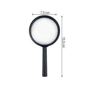 A lupa inclusa possui 75mm de diâmetro, garantindo uma ampliação perfeita para a leitura do atlas e outros materiais.