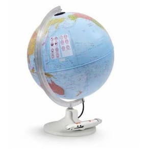 Globo Terrestre - 30Cm - Parlamondo Politico Interativo - 110/200V Globo geográfico luminoso e eletrônico de formato grande. Cartografia física política. Base de plástico. Oferece 6 opções de idiomas (português, francês, italiano, inglês, espanhol, alemão) e 8 menu de informações sobre a geografia, historia, política, curiosidades entre outras informações para cada pais. Caneta eletrônica recarregável via porte USB. Acompanha lampada LED bivolt.