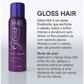 Gloss Hair é um spray finalizante, que perfuma o cabelo, realça o brilho intenso e duradouro sem deixar os fios pesados ou com aspecto oleoso. Hidrata e nutri o cabelo, além de prevenir odores.