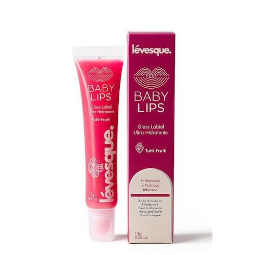 O Baby Lips da Lévesque é um gloss labial ultra hidratante, desenvolvido para proporcionar brilho, maciez e uma sensação agradável nos lábios. Sua fórmula combina ácido hialurônico, ativos naturais como o óleo de maracujá e o rarite, além de componentes nutritivos como o colágeno e o pantenol. Ideal para uso diário, deixa os lábios com aparência saudável, acabamento luminoso e um toque de cor delicado com fragrância Tutti-Frutti.