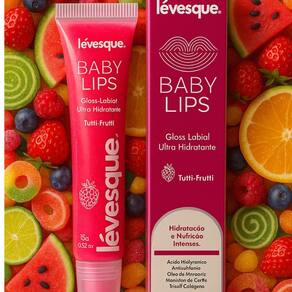 O Baby Lips da Lévesque é um gloss labial ultra hidratante, desenvolvido para proporcionar brilho, maciez e uma sensação agradável nos lábios. Sua fórmula combina ácido hialurônico, ativos naturais como o óleo de maracujá e o rarite, além de componentes nutritivos como o colágeno e o pantenol. Ideal para uso diário, deixa os lábios com aparência saudável, acabamento luminoso e um toque de cor delicado com fragrância Tutti-Frutti.