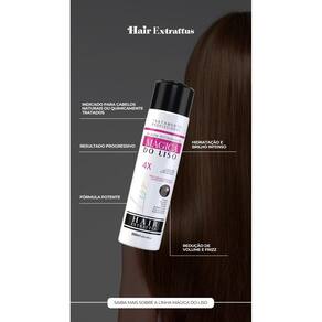 O Gloss Mágica do Liso Hair Extrattus foi especialmente desenvolvido para cabelos naturais ou quimicamente tratados que precisam de redução de volume, controle de frizz e um efeito liso duradouro. Sua fórmula poderosa contém ativos como vinagre, colágeno, sericina, cisteína, extrato de chia, óleo de linhaça e um blend exclusivo de ácidos que selam as cutículas e garantem fios disciplinados, macios e com brilho intenso. Esse tratamento promove uma selagem capilar restauradora, eliminando a sensação de rigidez e domando os fios rebeldes, deixando o cabelo progressivamente mais liso, alinhado e com toque sedoso. Ideal para quem busca um acabamento com efeito de salão no conforto de casa.