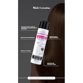 O Gloss Mágica do Liso Hair Extrattus foi especialmente desenvolvido para cabelos naturais ou quimicamente tratados que precisam de redução de volume, controle de frizz e um efeito liso duradouro. Sua fórmula poderosa contém ativos como vinagre, colágeno, sericina, cisteína, extrato de chia, óleo de linhaça e um blend exclusivo de ácidos que selam as cutículas e garantem fios disciplinados, macios e com brilho intenso. Esse tratamento promove uma selagem capilar restauradora, eliminando a sensação de rigidez e domando os fios rebeldes, deixando o cabelo progressivamente mais liso, alinhado e com toque sedoso. Ideal para quem busca um acabamento com efeito de salão no conforto de casa. Marca: Não Informado