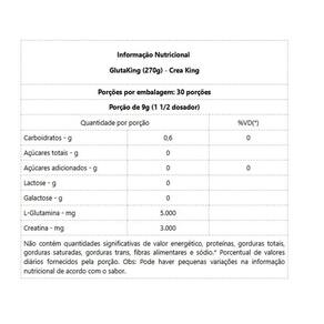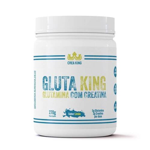 Glutaking (270g) - Sabor: Limão GlutaKing (270g) GlutaKing da Crea King é uma fórmula avançada que combina os benefícios de Glutamina e Creatina em uma dose saborosa e refrescante, projetada para suportar a recuperação muscular, o desempenho e a resistência física. Com uma dose precisa e equilibrada, GlutaKing é o parceiro ideal para quem busca resultados rápidos e eficazes no pós-treino.Glutamina (5g por dose): Este aminoácido essencial na recuperação muscular contribui para a redução da fadiga e o fortalecimento do sistema imunológico, acelerando a regeneração dos tecidos após exercícios intensos. A glutamina ajuda ainda a prevenir o catabolismo muscular, protegendo os ganhos de massa magra.Creatina (3g por dose): Reconhecida por aumentar a força e a explosão muscular, a creatina potencializa a síntese de ATP, fornecendo energia rápida e sustentável para atividades de alta intensidade. É um suplemento chave para quem busca melhorar o desempenho em treinos pesados e intensos. Benefícios: Recuperação acelerada: Glutamina para a regeneração e proteção muscular, reduzindo dores pós-treino.Maior força e explosão: Com 3g de creatina para suporte em exercícios de alta intensidade.Sabor refrescante de limão: Uma opção deliciosa que facilita o consumo diário.Suporte imunológico: Fortalecimento das defesas naturais, especialmente benéfico para quem realiza treinos frequentes e intensos. Marca: Crea King