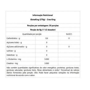 Glutaking 270g - Sabor: Limão Glutaking 270g GlutaKing da Crea King é uma fórmula avançada que combina os benefícios de Glutamina e Creatina em uma dose saborosa e refrescante, projetada para suportar a recuperação muscular, o desempenho e a resistência física. Com uma dose precisa e equilibrada, GlutaKing é o parceiro ideal para quem busca resultados rápidos e eficazes no pós-treino.Glutamina 5g por dose : Este aminoácido essencial na recuperação muscular contribui para a redução da fadiga e o fortalecimento do sistema imunológico, acelerando a regeneração dos tecidos após exercícios intensos. A glutamina ajuda ainda a prevenir o catabolismo muscular, protegendo os ganhos de massa magra.Creatina 3g por dose : Reconhecida por aumentar a força e a explosão muscular, a creatina potencializa a síntese de ATP, fornecendo energia rápida e sustentável para atividades de alta intensidade. É um suplemento chave para quem busca melhorar o desempenho em treinos pesados e intensos. benefícios: recuperação acelerada: Glutamina para a regeneração e proteção muscular, reduzindo dores pós-treino.Maior força e explosão: Com 3g de creatina para suporte em exercícios de alta intensidade.Sabor refrescante de limão: Uma opção deliciosa que facilita o consumo diário.Suporte imunológico: Fortalecimento das defesas naturais, especialmente benéfico para quem realiza treinos frequentes e intensos. Marca: Não Informado