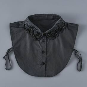 Gola falsa removível preta com design bordado de miçangas — Material de algodão, perfeito para adicionar elegância a blusas, vestidos e suéteres — 41 x 34 x 30 cm Material: algodão Tamanho: 41 × 34 × 30 cm Peso: 100 g