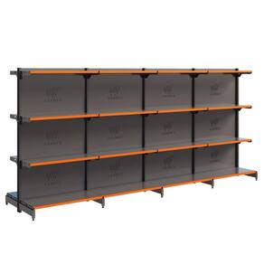 Gôndola Centro 1 Inicial 3 Continuações 1,37 m 40KG FIT Expositor de Supermercado Amapá - Preto Perfil Laranja